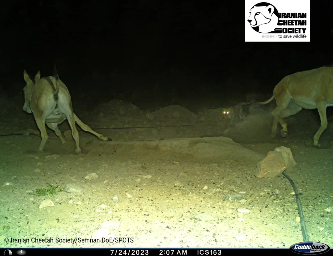 We are thrilled to share with you this amazing picture captured by one of our camera traps in the Touran Biosphere Reserve. This is the first time we have ever seen a Persian leopard attempt to hunt Persian Onagers in front of our cameras. Although she was unsuccessful in her attempt, this stunning shot is very valuable for us as it reveals some of the secrets of this elusive and endangered big cat.